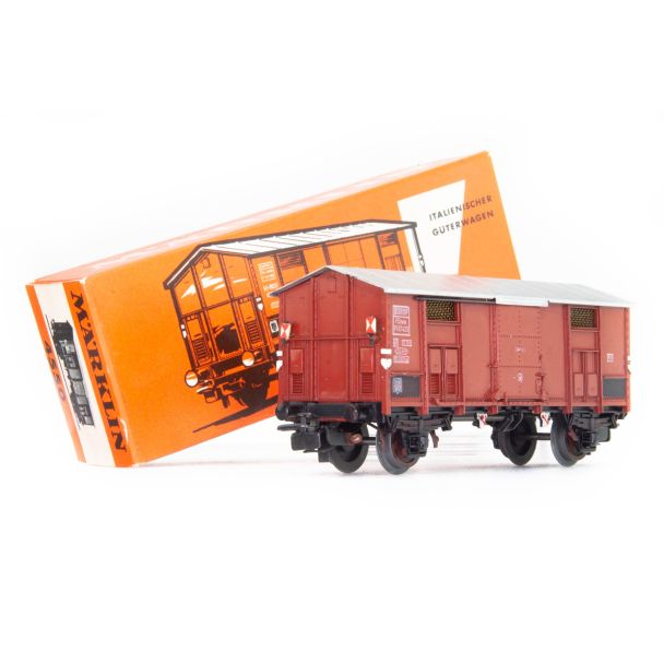 MÄRKLIN 4550, Version 1 nach Koll. 2 Achsen, Aufbau Kunststoff braun, silbernes Spitzdach, eingesetzte Lüftungsgitter (Messingdraht-Geflecht).