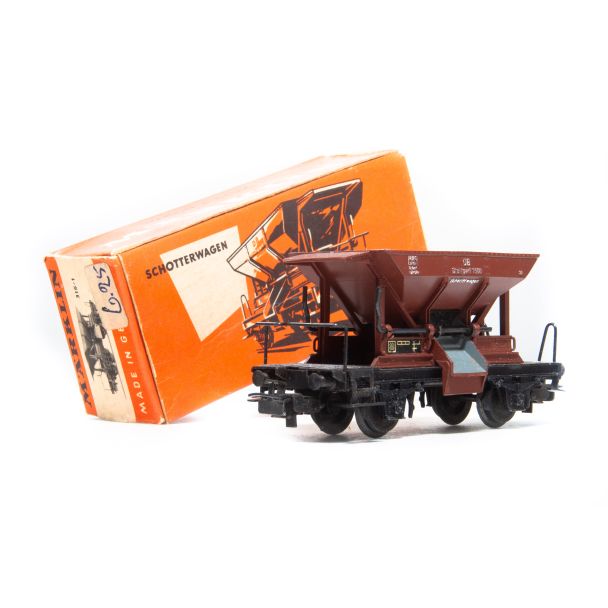 MÄRKLIN Schotterwagen 4501. Version 2 nach Koll. Aufbau aus braunem Kunststoff, innen grau. Erhabene Aufschrift 31511 DB Stuttgart.