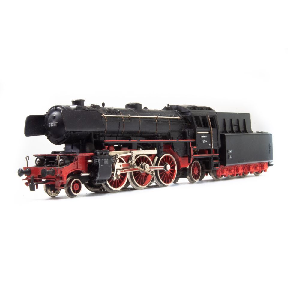 MÄRKLIN Lok mit Tender DA800. Version 1 nach Kroll. Achsfolge 1'C1', BR 23 der DB, schwarz. Fahrgestell aus Guß, Aufbau aus Kunststoff. Zwei Lampen mit Lampenstangen. Kleine Windfeitbleche (Wille) gesteckt, Betr.-Nr. 23 014, Aufschrift DA800, Führerhaus, hinten geschlossen, Fronttreppe rot. Vor- u. Nachlaufgestell Guß, rot. Handschalthebel, Haftreiten, vom HK 9, Schweißtender vierachsig, schwarz, Kunststoff, Aufschrift DA809, BK 5.