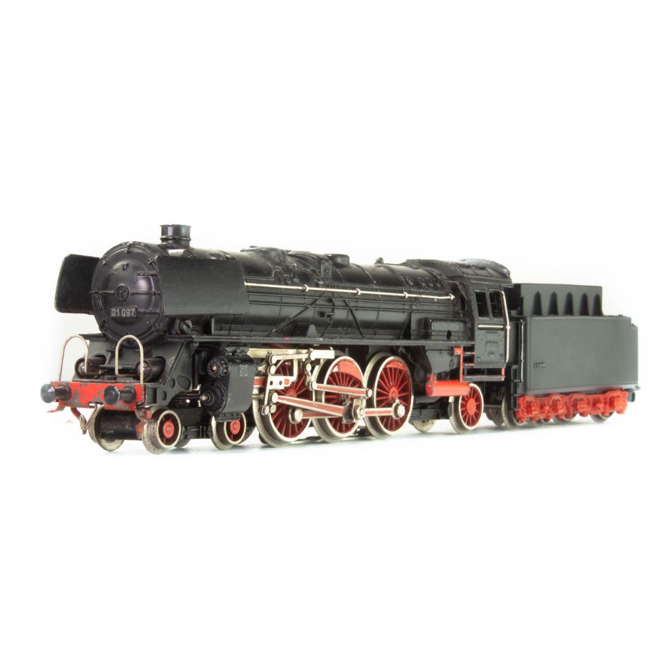 MÄRKLIN F800, Version 1 nach Koll. Runde Lampenbügel, Handschalthebel, Tenderaufbau aus Kunststoff mit Aufschrift F 809/1, Betr.-Nr. 01 097, Haftreifen.