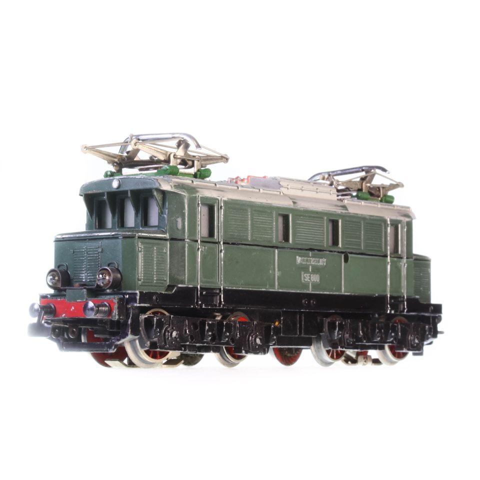 MÄRKLIN E-Lok SE800 (3011). Gehäuse Olivgrün. Dach silbergrau. Unlackierte Aufschrift SE 800 und Betriebs-Nr. E 63 02. Schwarze Zierlinie.
