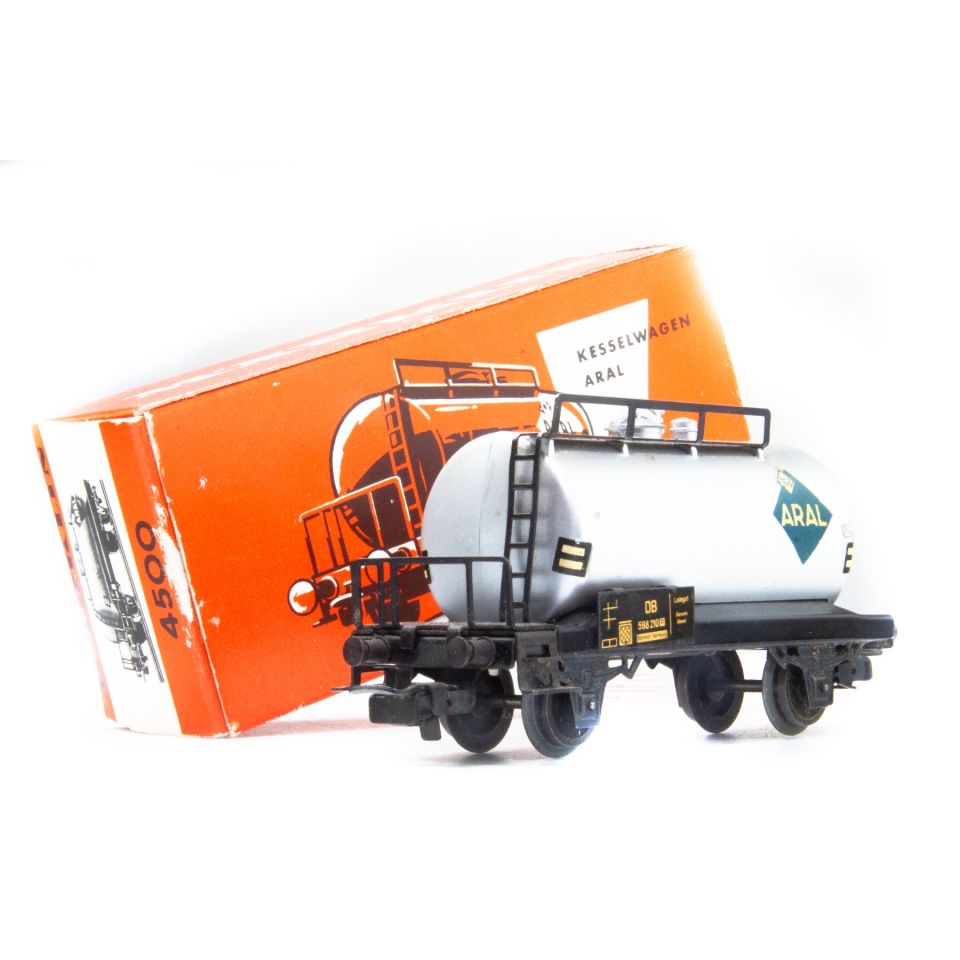 MÄRKLIN Kesselwagen 4500. Version 4 nach Kroll. Kessel mit erhabenem RIV-Schild. Ohne Kessel-Aufschrift DB 599 304, ARAL-Signet (Schiebebild), Bremszeichen am Kessel als Schiebebild, rechteckiges Gattungsschild mit Aufschrift 598 210.