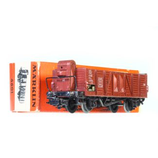 Die Wagons der Modellreihe Omm 33 der DB waren von 1939 – 1974 im Einsatz. Das Modell wurde 1956 erstmals vorgestellt. Der Aufbau mit Bremserhaus war aus braunem Kunststoff und die Außenwände wurden mit Bretternachbildungen gestaltet. Die Aufschriften und Eckzeichen sind in der ersten Version weiß handgemalt.