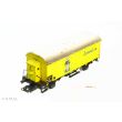 Geschlossener Güterwagen von MÄRKLIN. Zinkdruckguss, Bananenwagen mit Bremserhaus, 2 Achsen, Guß, gelb mit blauer Aufschrift Jamalca und Abbildung eines Bananenpflückers, erhabene Aufschrift 324, Bremserhaus, Bügelkupplung, Länge 11.5 cm.