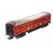 Personenwagen (Schürzenwagen) aus der 346er Serie. Version 1 nach Koll. Braunrotes Gehäuse aus Stahlblech. 2. Klasse. Aufschrift DSG SPEISEWAGEN 346/2 und DSG Signet in orange. Cellonscheiben. Dach glänzend beige. Schilder hochgeprägt, Raucherschild mit Strichen, Wagenboden innen silbern, Faltenbalgübergänge, Drehgestell aus Guss im Blechboden verschraubt, Stummelachsen, BK 5, Länge 20.5 cm.