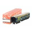 Schlafwagen (Schürzenwagen) aus der 346er Serie. Version 4 nach Koll. Dunkelblaues Gehäuse aus Stahlblech. Aufschrift DINING-CAR VOlTURE-RESTAURANT COMPAGNIE INTERNATIONALE DES WAGONS-LITS ET DES GRANDS EXPRESS EUROPEENS. CIWL-Signet in gelb. Cellonscheiben. Dach glänzend beige, Halterung genietet. Schilder eben, Wagenboden innen silbern, Faltenbalgübergänge, Drehgestell verschraubt, Stummelachsen, BK 5, Länge 20.5 cm.
